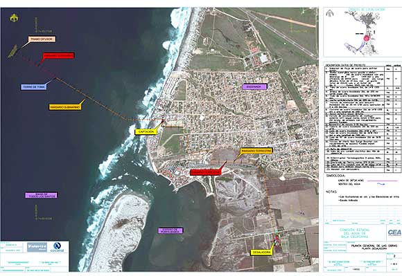 Construcción de una planta desaladora de agua de mar capaz de aportar un caudal de 21.600 m3/día de agua desalada y tratada para el abastecimiento a la población de Ensenada con el objetivo de reforzar la garantía al abastecimiento.